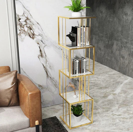 La bibliothèque en métal à magnificence géométrique ne manquera pas de faire sensation dans la maison. Les supports inclinés et les étagères décalées sont accrocheurs et robustes, fabriqués à partir de matériaux de haute qualité pour compléter cette unité. Cette étagère est idéale pour le salon, le lieu de travail ou même la bibliothèque à la maison avec un design d'angle. Stable et durable, il est fabriqué en métal résistant à la corrosion ; il peut être positionné dans l'angle de la pièce.permettant beaucoup d'espace de stockage et d'affichage. H 170CM/40Cm/40CM