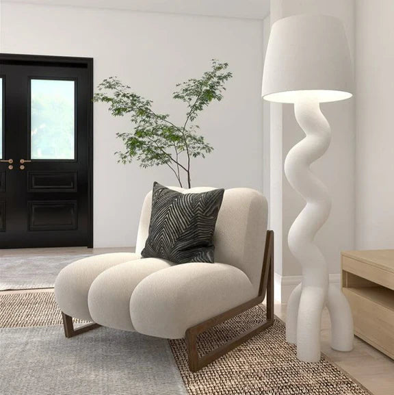 Apportez une touche de modernité et de douceur à votre intérieur avec ce fauteuil au design arrondi et élégant. Son assise généreusement rembourrée et son tissu bouclette au toucher doux offrent un confort absolu, idéal pour vos moments de détente.